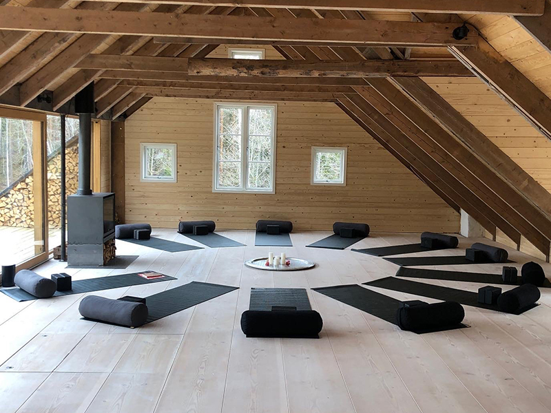 I yogasalen kombinerer ro givende yin yoga, flow yoga, og får sved på panden med dynamisk soma move. Vi laver afspænding og meditation, og varme/kolde terapi i form af sauna gus, bad i vandfaldet og søen.